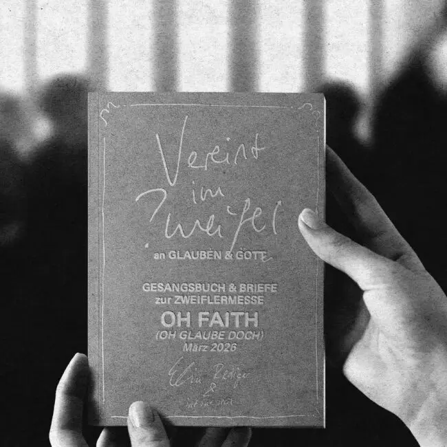 Our doubters’ mass OH FAITH (OH GLAUBE DOCH) premieres on 27 March at the Residenz of Schauspielhaus Leipzig. Further performances and guest appearances will follow.